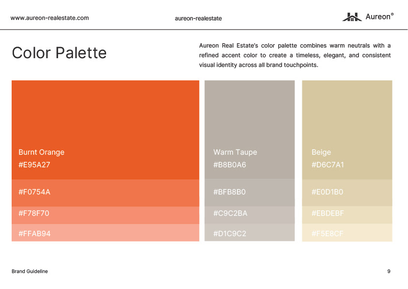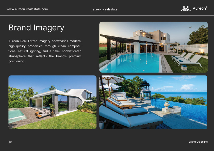Für Aureon Real Estate wurde eine ganzheitliche Brand Identity entwickelt, die strategische Klarheit mit einer zeitlosen, hochwertigen visuellen Sprache verbindet. Ziel war es, eine Marke zu schaffen, die Vertrauen aufbaut, Qualität vermittelt und über alle Kanäle hinweg konsistent funktioniert.
